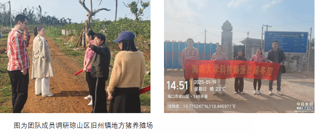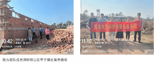 2025年1月19日,太阳集团tcy8722科技特派员服务团“地方猪应急救灾”项目组成员闻晓波、荀文娟、肖倩、张海文以及海南省地方猪产业技术体系周身娉博士等人,到海口市琼山区甲子镇及旧州镇两家地方猪养殖企业进行调研,对疫病防控、饲料营养及遗传育种等工作开展技术指导。