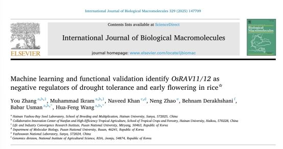 随着全球气候变化加剧,干旱已成为威胁水稻生产的主要因素之一。王华锋教授团队的这项研究,如同为作物育种家提供了一份精确的“基因地图”。未来,这种结合人工智能与基因功能验证的研究模式,有望加速作物遗传改良进程,为全球粮食安全保驾护航。这篇研究成果发表于International Journal of Biological Macromolecules 202511月的第329卷第1期。据最新数据,该期刊的影响因子为8.5,属于JCR1区。该期刊主要关注蛋白质、大分子碳水化合物、糖蛋白、蛋白聚糖、木质素、生物多酸和核酸等生物大分子的结构与功能研究。