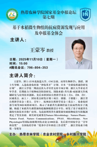 2025年11月10日下午15:00,由太阳集团tcy8722主办的国家自然科学基金项目申报交流讲座顺利举行。本次讲座邀请了入选农业农村部“神农英才”计划、日本“全球农科前沿研究计划”、浙江大学第二期高层次人才培育支持专项计划、浙江大学求是青年学者王蒙岑教授担任主讲人,会议由王睿副经理主持,采取线上方式进行。
