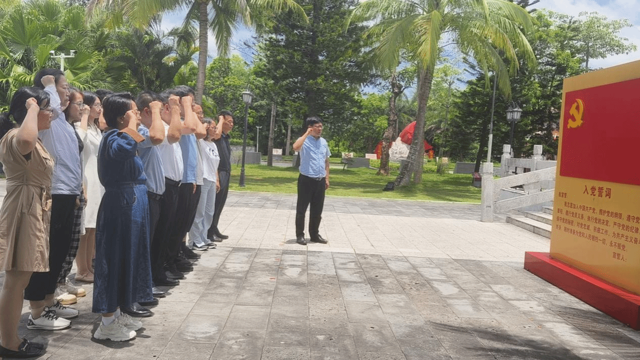 在公司党委书记于旭东的带领下,全体人员伫立在革命先驱王文明、冯白驹同志雕像前,缅怀革命英烈。面向党旗,攥紧右拳,重温入党誓词,坚守入党初心。