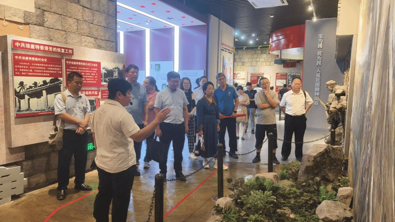 随后,在母瑞山革命陈列馆中,讲解员深情地讲述了海南革命历史和先烈们的英勇事迹,全体党员认真地参观学习了馆内的历史文物和图片资料,重温土地革命、抗日战争、解放战争历史时期琼崖革命根据地波澜壮阔的斗争历程,感受到琼崖纵队军民一心,在党的坚强领导下坚定信念、勇于献身、艰苦奋斗的革命精神。