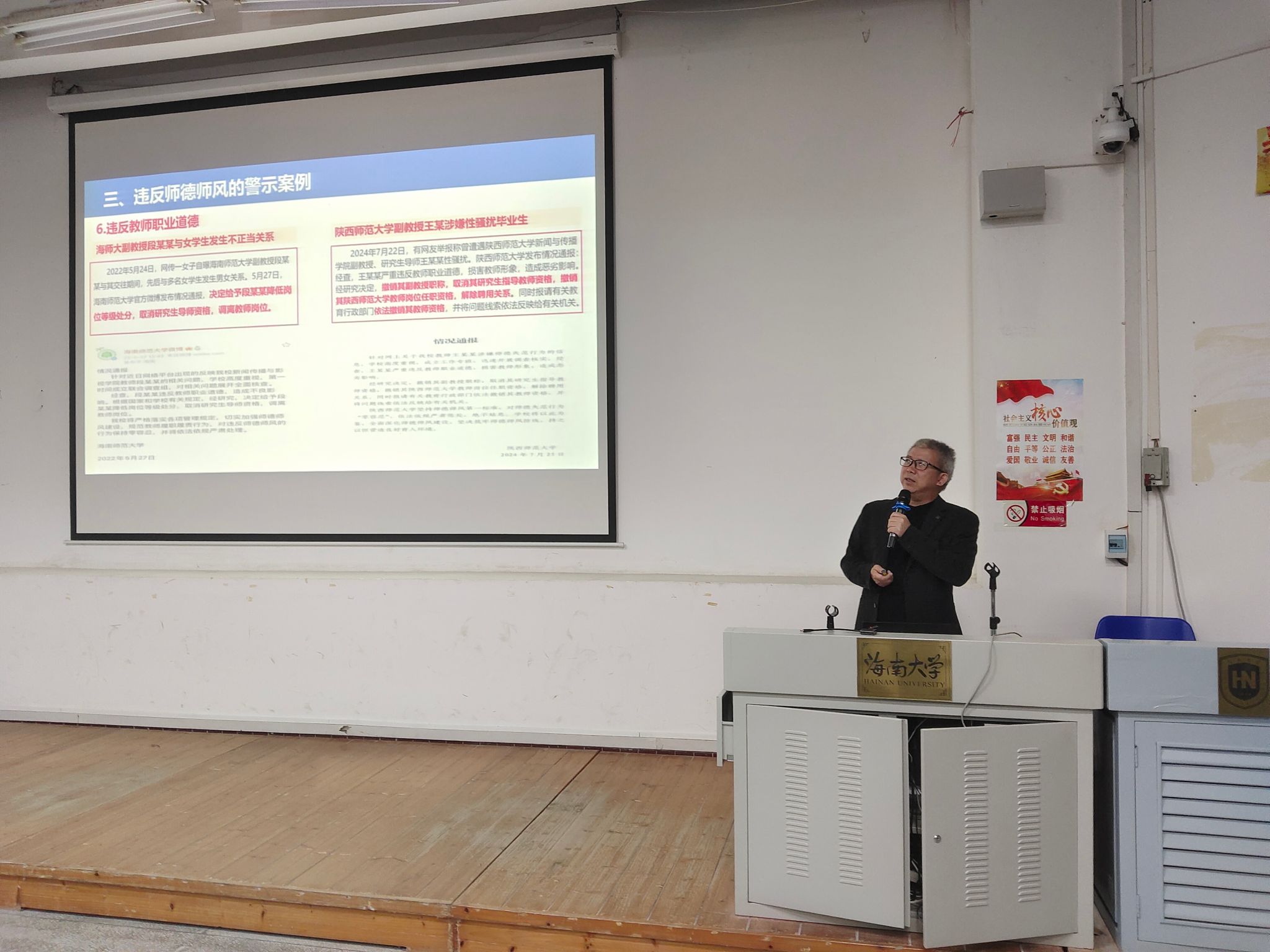 为进一步加强师德师风建设,提升教师队伍的整体素质。12月20日晚,公司党委常委、副董事长邱锡光到儋州校区电教室作师德师风专题宣讲。宣讲会由公司党委书记于旭东主持,公司全体教职工参加。