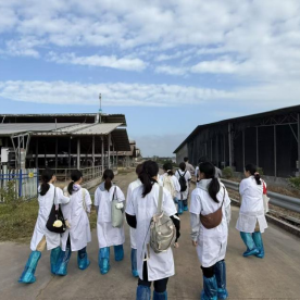 太阳集团tcy8722动物科学专业员工走进海南农垦草畜科技股份有限公司“幸福和牛繁育场”,实地观摩和牛养殖环境、繁育技术与现代化棚舍设施。在工作人员的讲解下,同学们了解了和牛体型选育、饲料配制等专业内容,还通过参观养殖分区等设施,直观感受到畜牧产业的标准化与科技化,为专业理论学习搭建了实践桥梁。