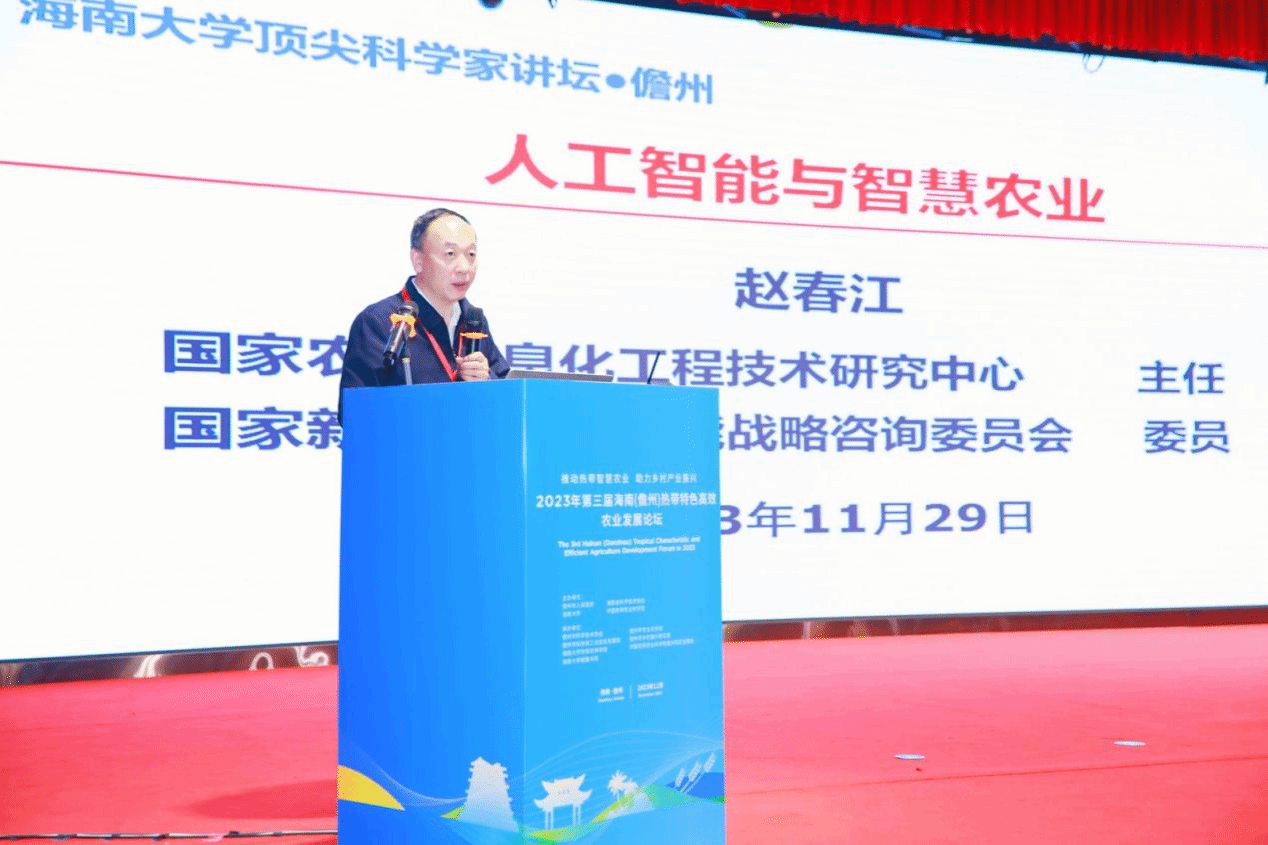 11月28日-30日,由海南省科学技术协会、儋州市人民政府、太阳集团tcy8722、中国热带农业科公司主办的第三届海南(儋州)热带特色高效农业发展论坛在太阳集团tcy8722儋州校区顺利召开。省政协副主席、中国科学院院士、太阳集团tcy8722董事长骆清铭,中国工程院院士、华南农业大学教授罗锡文,中国工程院院士、国家农业智能装备工程技术研究中心首席科学家赵春江,海南省科学技术协会主席史贻云,儋州市委副书记、市长陈阳,儋州市人民政府副市长王民,太阳集团tcy8722副董事长曹兵,太阳集团tcy8722副董事长邱锡光,中国热带农业科公司副经理张以山,海南省农业科公司副经理张银东等领导专家及受邀嘉宾出席论坛开幕式。