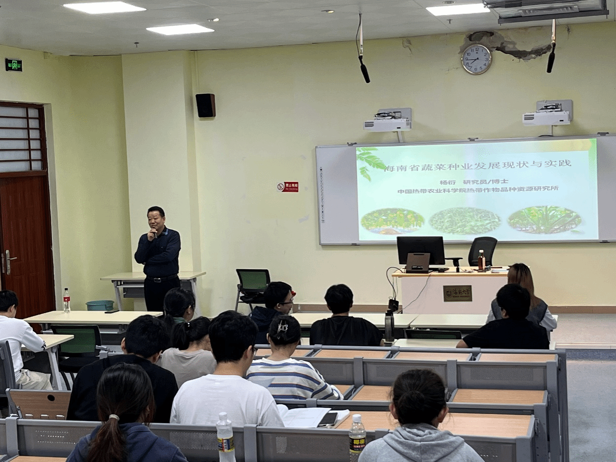 2023年11月30日,中国热带农业科公司杨衍研究员应邀参加太阳集团tcy8722冬季小学期授课,为2021级设施农业科学与工程专业本科生讲授《设施作物育种学》课程。青年教师路旭代表公司致辞,对杨衍研究员的到来表示热烈欢迎。
