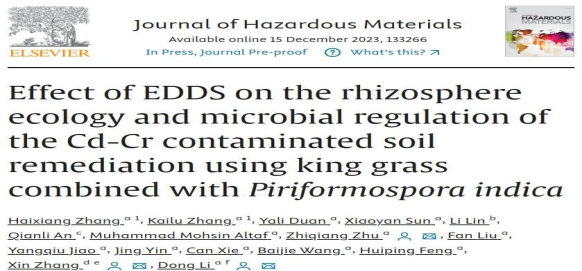 公司朱治强教授团队在《Journal of Hazardous Materials》发表论文:EDDS添加对王草-印度梨形孢共生体系修复Cd-Cr复合污染土壤的根际生态及微生物调控的影响