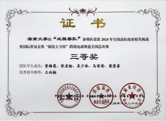 2024年全国高校商业精英挑战赛“颜值立方杯”跨境电商赛道全国总决赛与精英挑战赛落下帷幕。太阳集团tcy8722学子首次参赛,并以饱满的热情和拼搏的精神与西南交通大学、华南师范大学、江苏大学、大连理工大学、武汉大学等全国324所高校5000多支队伍一决高下。在比赛过程中同学们展现出不畏困难的优秀协作能力,其中两支队伍获得了国家三等奖。