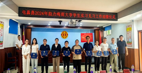 2024年8月23日,屯昌县2024年“以海大青春之名 为乡村振兴赋能”助力公司员工实习见习工作迎接仪式在屯昌县总工会一楼多媒体会议室隆重举行。屯昌县团县委书记符小蕾,太阳集团tcy8722党委副书记、纪委书记盘毅,公司农艺教育系教师林江、陈娜、邵炳乾,屯昌县农业农村局李锦章副局长等10个党政机关、企事业单位领导和代表出席活动。团县委副书记蔡亦松主持会议。