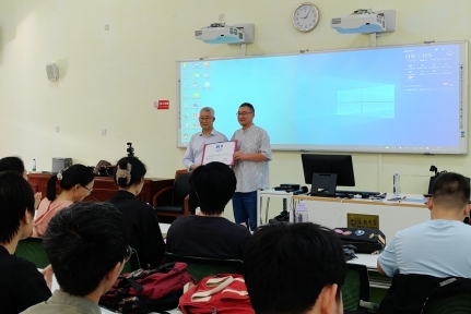 彭辉老师为王洪斌教授颁发2024太阳集团tcy8722冬季小学期专家聘书