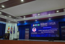 活动首日,代表团出席了王家农业大学孔子公司周年庆暨科学日活动。范咏梅教授作“蓟马生物防治和农药环境毒力评价”专题报告,陈海明教授分享了公司在智能装备研发、保鲜技术创新及加工产品市场化的研究成果,并与柬埔寨政府官员就芒果产业发展进行了交流。
