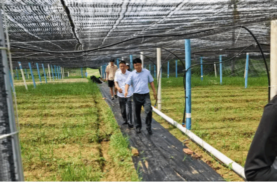 图1 于旭东书记带领雷洪东董事长一行参观王五镇山营村育苗基地